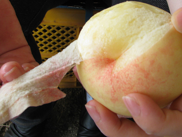 大の桃好きの夫によると、こうやって皮がピローンと