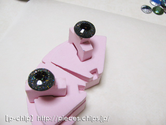 オーブン粘土で目のもと(?)を作ります。