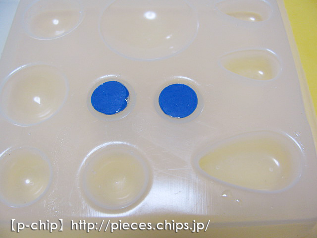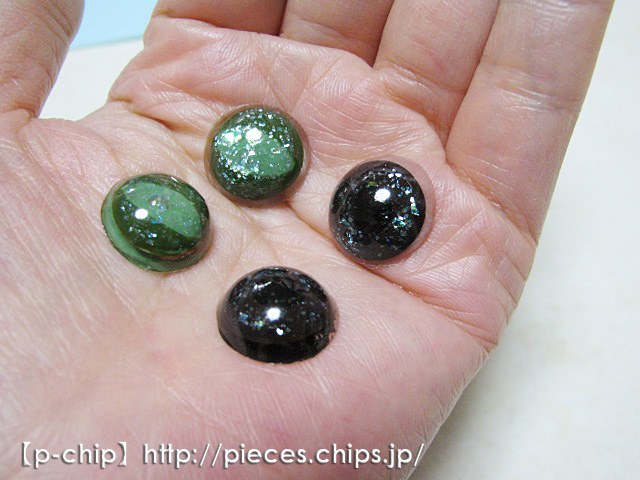 平たい方を、半球の型でレジンに閉じ込めてみようと思います。