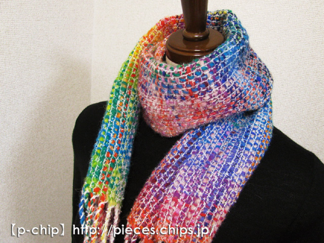 思いつきで次の色、次の色と紡いだ糸が