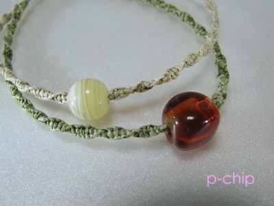 ギャラリー:ブレスレット(とんぼ玉・ヘンプ編み)