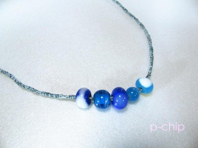 ギャラリー:ネックレス(とんぼ玉・ヘンプ編み)