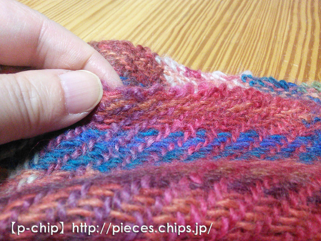両端の耳で折り返したヨコ糸が少しウニョウニョしてます。