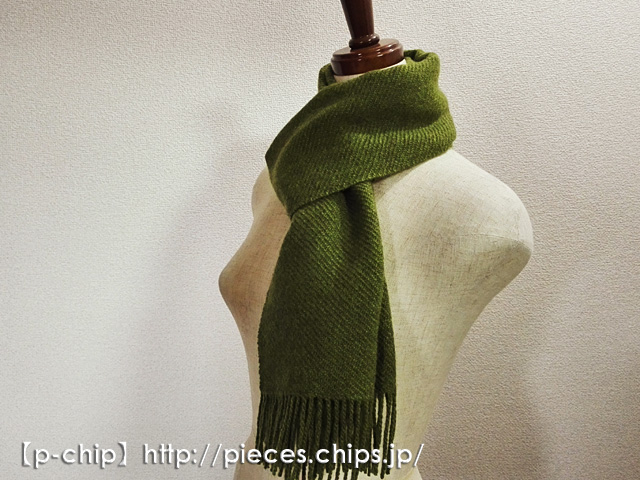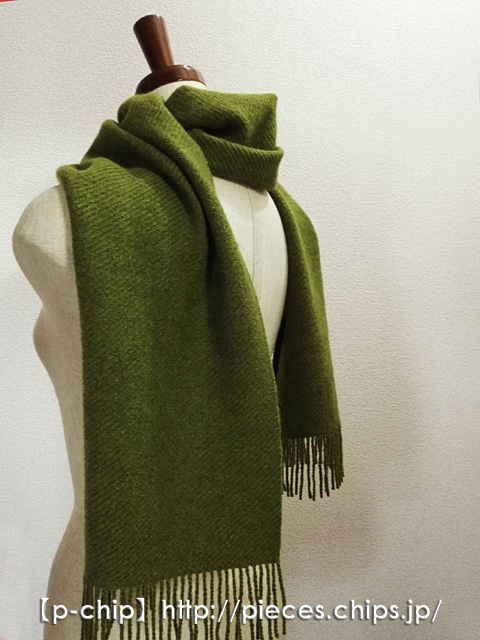 【手織り】マフラー015 ヤクの糸 グリーン 綾織り