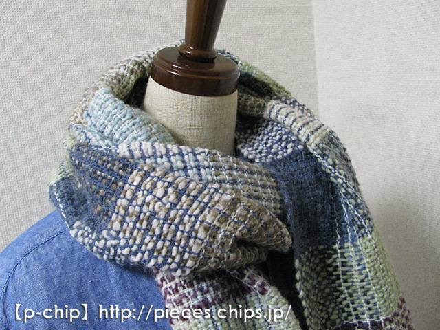 手織りの幅広マフラー