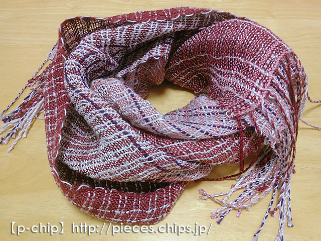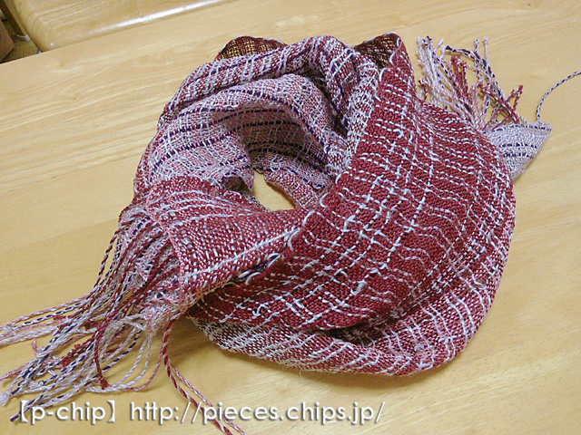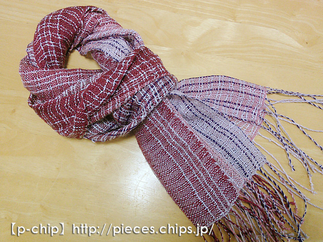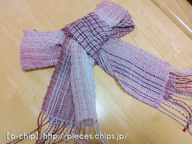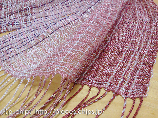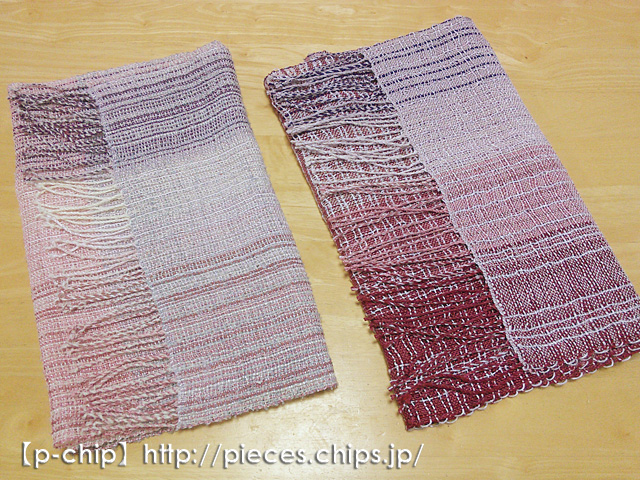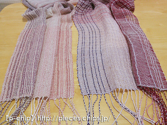 右が新しく織ったストール003、リネン糸が入っている方です。