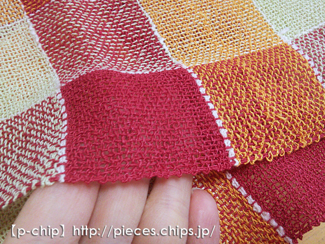 ヨコ糸を斜めにしないと織り幅が縮んでいくけれど、