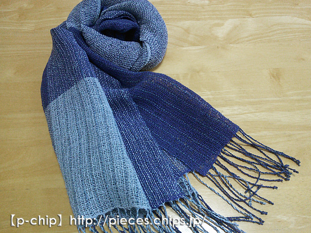 【手織り】ストール007 ブルー系濃淡で