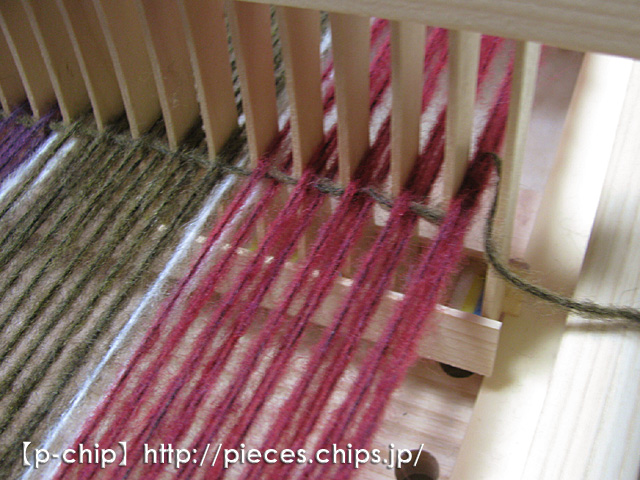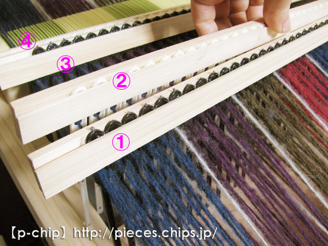 ちなみに、4本中、1本ずつを持ち上げてヨコ糸を通しているので
