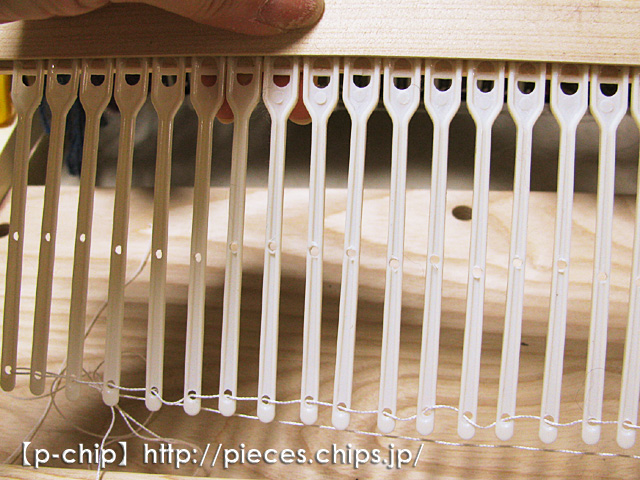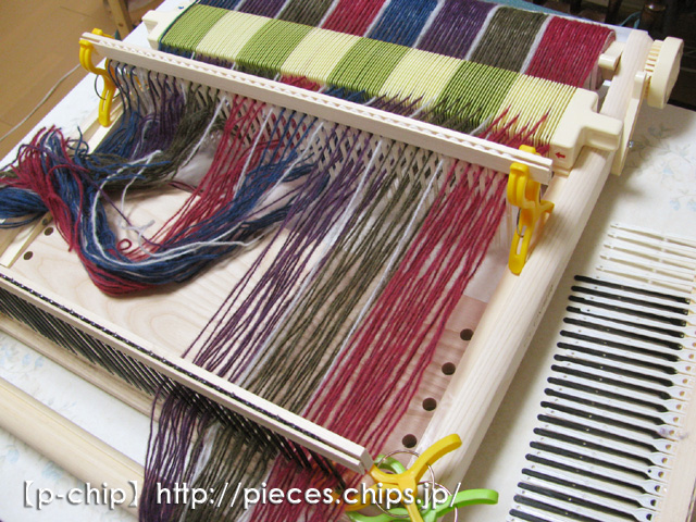 自作の綜絖と筬でちゃんと織れると分かったらはずす予定です。
