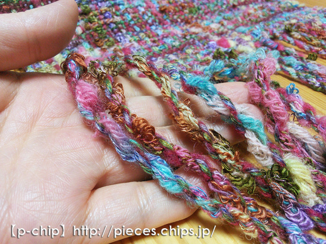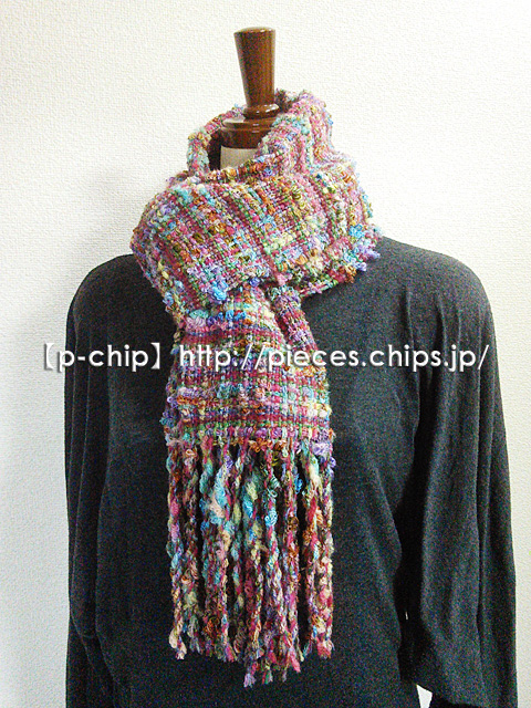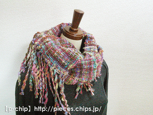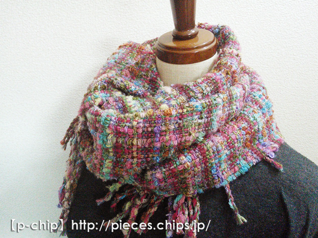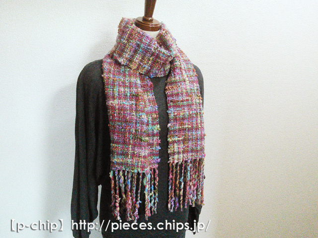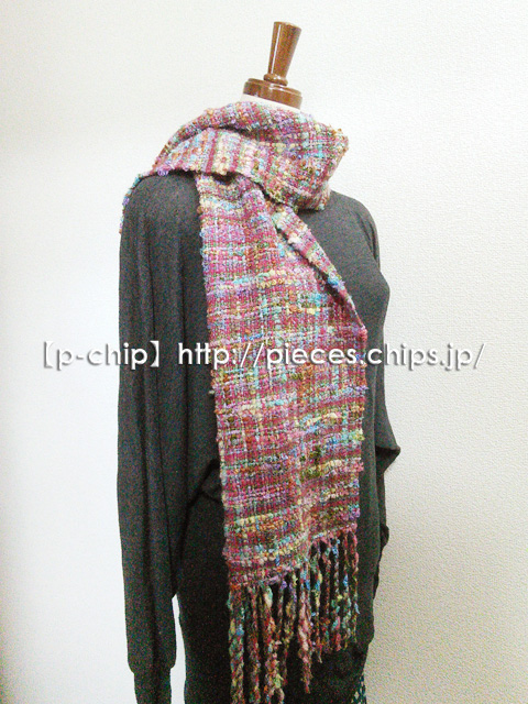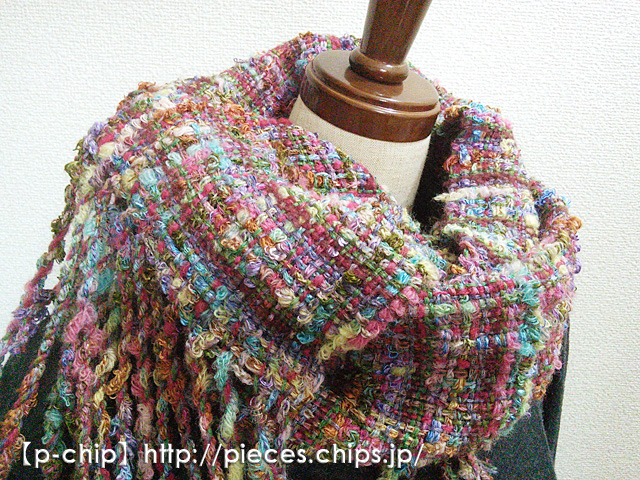手織り カラフルな変わり糸 ツィード風マフラー