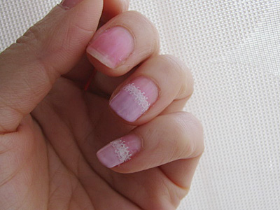 水桃ベースに紅梅白、いちごみるくでハーフフレンチ、レースシール