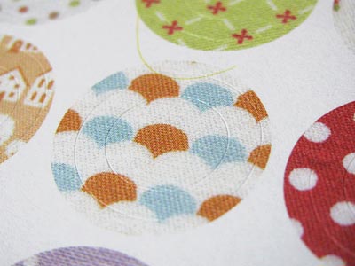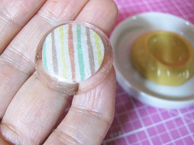 市販のシールを封入します。既に丸くカットされてるので簡単だろうと思って。