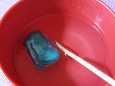 おゆまるをお湯で柔らかくする。