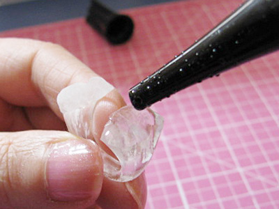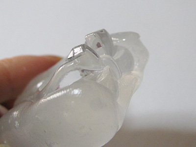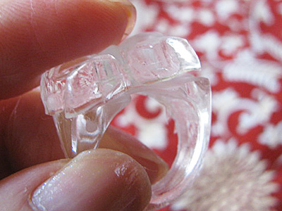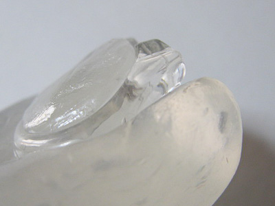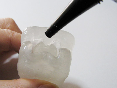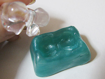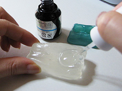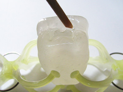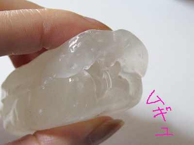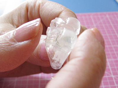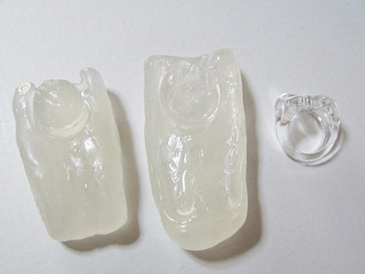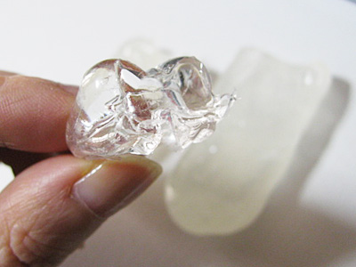 これは型が深く複雑なのでUVライトの光を通すようにクリアのおゆまるです。