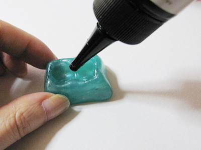 リボン部分の型にUVレジンを流し込み、