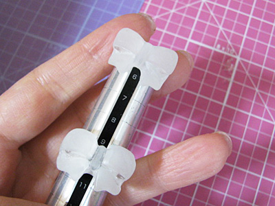 で、リング台とリボンパーツに分けて型を取るところからサイズ変更していきます。