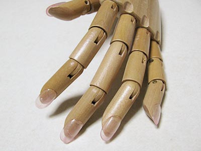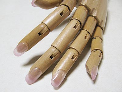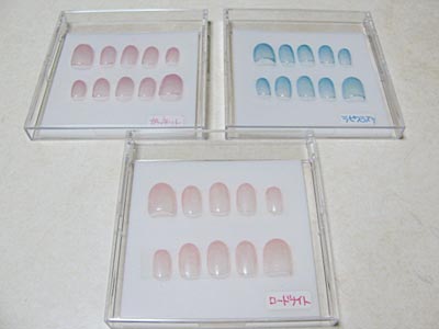 私の爪の型を取ってダミー指を作り、その爪にハードジェルを重ねて作ったネイルチップ