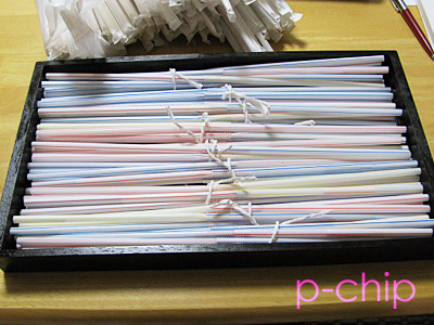 かんぴょうじゃなくてストローの袋のコヨリで縛ってます。